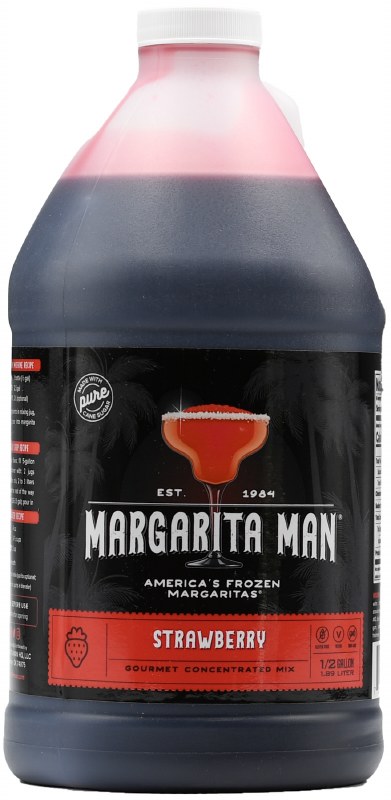 Popular and versatile with organic puréed strawberries and organic strawberry flavor Margarita Man Strawberry concentrate, water, tequila, rum, or vodka (spirits optional).