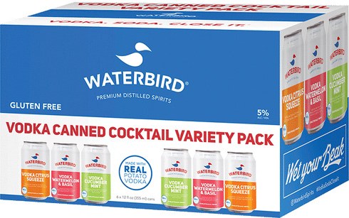 Our Variety Pack contains 6 delicious canned cocktails – 2 Cucumber Mint canned cocktails (5% ABV), 2 Watermelon & Basil canned cocktails (5% ABV), and 2 Citrus Squeeze canned cocktails (5% ABV)! Pick up a Waterbird Vodka Variety Pack today!